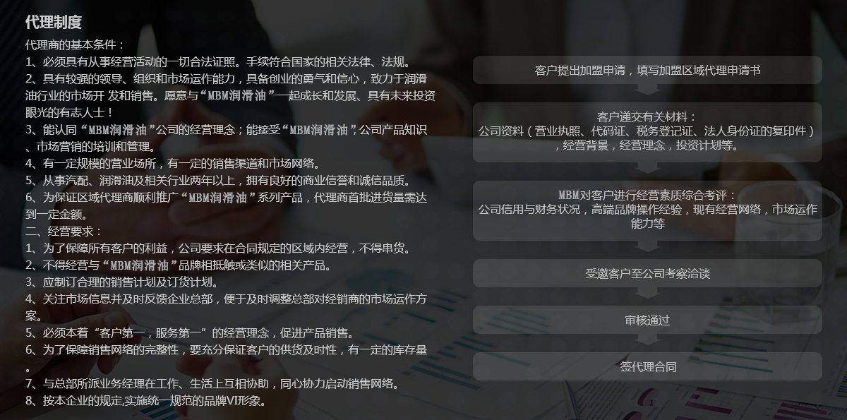 5、業(yè)務(wù)支持:不定期派遣業(yè)務(wù)管理人員、營銷策劃人員、協(xié)助銷售人員幫助代理商開拓市場(chǎng)。
